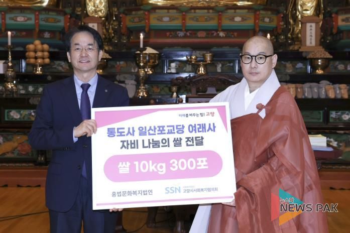 뉴스팍 배상미 기자 | 고양특례시는 지난 3일 정월대보름을 맞아 대한불교조계종 여래사에서 어려운 이웃을 위해 쌀 300포를 기부했다고 밝혔다.