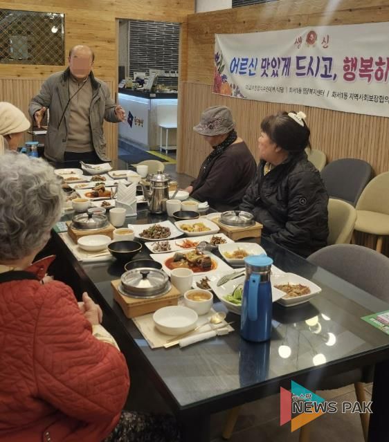 뉴스팍 배상미 기자 | 수원시 팔달구 화서1동은 지난 4일, 3월 생일을 맞이한 독거어르신 9명을 모시고 이교수한정식(대표 이태석)에서 '어르신 사랑의 생신상' 행사를 진행했다.