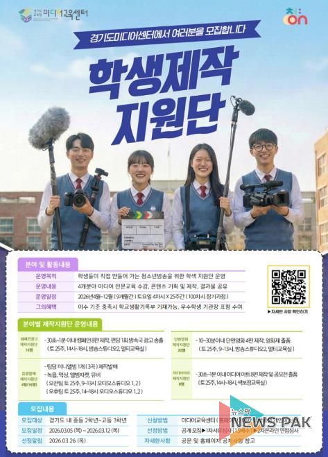 뉴스팍 배상미 기자 | 경기도교육청미디어교육센터가 미디어 분야 진로를 희망하는 경기도 중·고등학생을 대상으로 녪년 청소년방송 학생 제작지원단’을 모집한다.