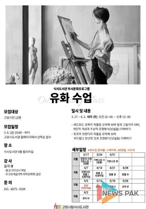뉴스팍 배상미 기자 | 고양특례시 식사도서관은 오는 3월 17일부터 공공도서관 성인 독서문화 프로그램 ‘유화수업’을 운영한다.