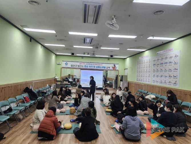 뉴스팍 배상미 기자 | 안양시 동안구보건소는 시민의 응급처치 역량을 강화하고 심정지 등 위급 상황 발생 시 신속한 대응이 이루어질 수 있도록 찾아가는 심폐소생술(CPR) 교육인 ‘4분의 기적 당신의 두 손이 한 생명을 살립니다!’를 운영한다고 10일 밝혔다.