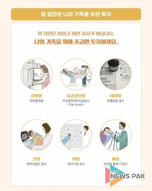 국가암검진사업은 암을 조기에 발견해 치료율을 높이고 사망률을 낮추기 위해 시행되는 제도다. 검진 비용 지원 대상자는 의료급여 수급권자와 건강보험 가입자(피부양자 포함) 중 보험료 부과 기준 하위 50%에 해당하는 시민으로, 직장가입자는 월 보험료 12만7천500원 이하, 지역가입자는 월 보험료 6만 원 이하인 경우 해당된다.
