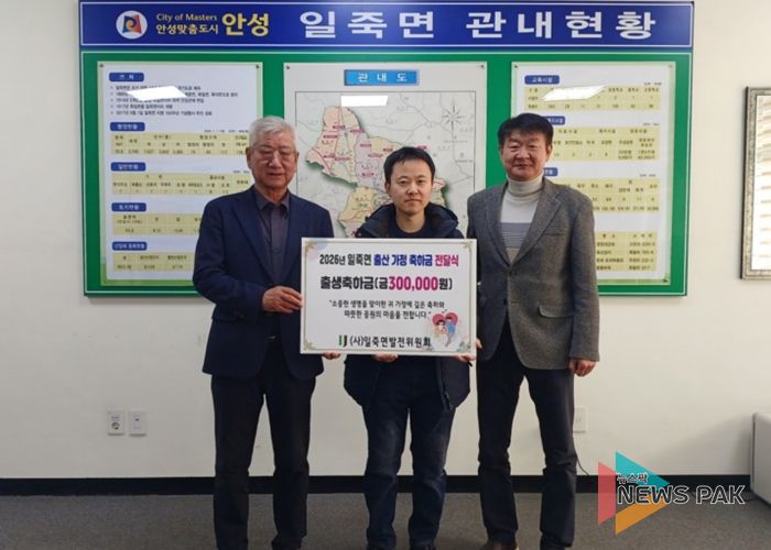 앞서 (사)일죽면발전위원회는 지역 공동체 활성화와 출생 장려를 위해 2026년 3월부터 일죽면에서 태어난 출생아 가정에 30만 원 상당의 축하금을 전달하기로 결정한 바 있다.