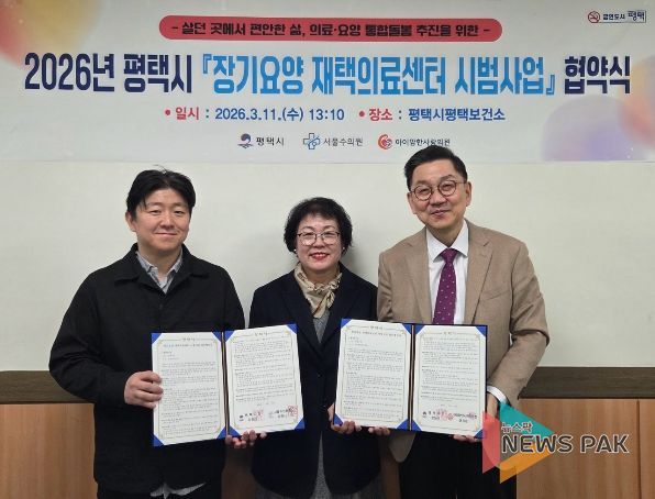 뉴스팍 이소율 기자 | 평택시는 지난 11일 의료서비스 접근성을 높이고 지역사회 의료·통합돌봄 체계 강화를 위한 장기요양 재택의료센터 시범사업 업무 협약을 체결했다고 밝혔다.