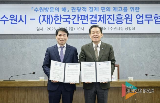 수원시는 13일 시청 상황실에서 (재)한국간편결제진흥원과 업무협약을 체결하고, 외국인 관광객의 결제 편의성을 높이기 위해 협력하기로 했다.