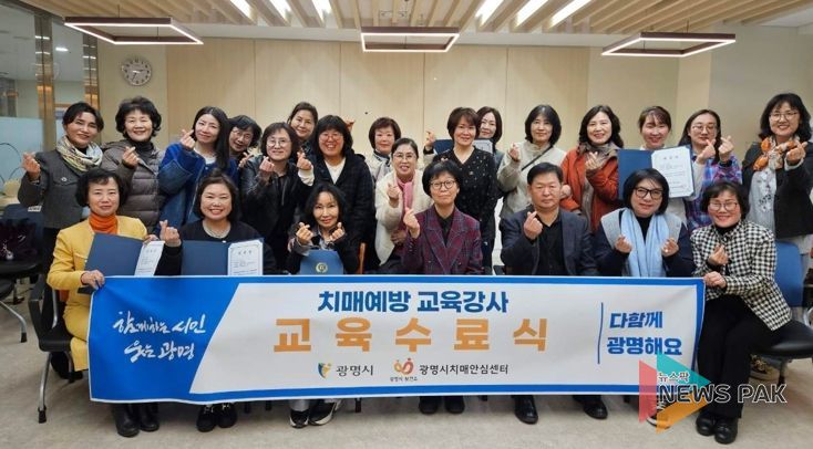 뉴스팍 배상미 기자 | 광명시 치매안심센터는 지난 13일 ‘치매예방교육 시민강사 양성 과정’ 수료식과 강사 위촉식을 개최했다.