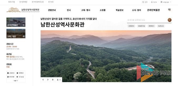 뉴스팍 배상미 기자 | 경기문화재단 남한산성역사문화관이 남한산성의 역사·문화 콘텐츠를 온라인에서 편리하게 확인할 수 있도록 공식 누리집을 개설하고 본격적인 운영에 들어갔다.