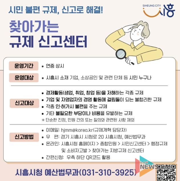 뉴스팍 배상미 기자 | 시흥시(시장 임병택)는 시민의 일상과 기업 활동을 저해하는 불합리한 규제를 현장에서 직접 듣고 개선하기 위해 ‘찾아가는 규제신고센터’를 연중 상시 운영한다.