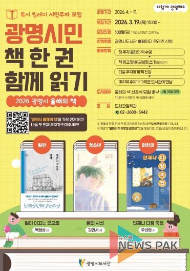 뉴스팍 배상미 기자 | 광명시는 ‘2026 광명시 올해의 책’을 함께 읽는 독서릴레이 시민주자를 오는 19일부터 선착순으로 모집한다.