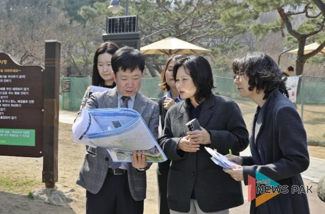 이날 방문에는 구청장, 지역 주민, 수원특례시의회 김은경·장정희·이찬용 의원 등이 동행해 올림픽공원, 효정어린이공원, 늘푸른공원, 원형육교 꽃길 및 궁촌육교 보행환경 개선 사업지를 차례로 둘러봤다.