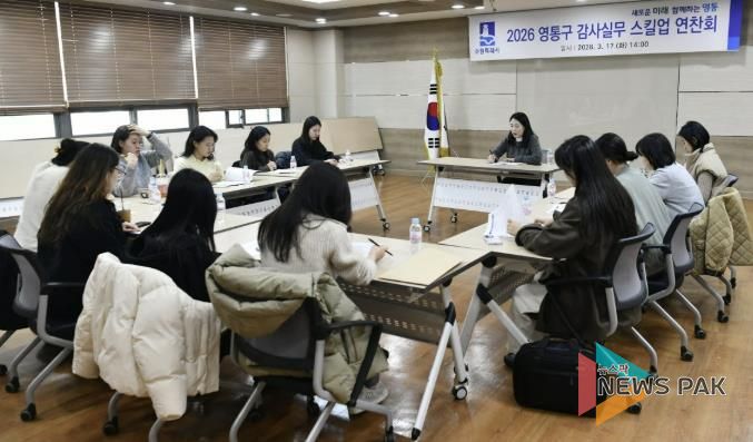 뉴스팍 배상미 기자 | 수원시 영통구는 지난 17일 동 행정복지센터 실무자 12명을 대상으로 '감사실무 스킬업 연찬회'를 개최했다. 이번 연찬회는 종합감사 과정에서 반복적으로 지적되는 사례를 중심으로 실무 대응 역량을 높이고, 직원들의 전문성을 강화하기 위해 마련됐다.