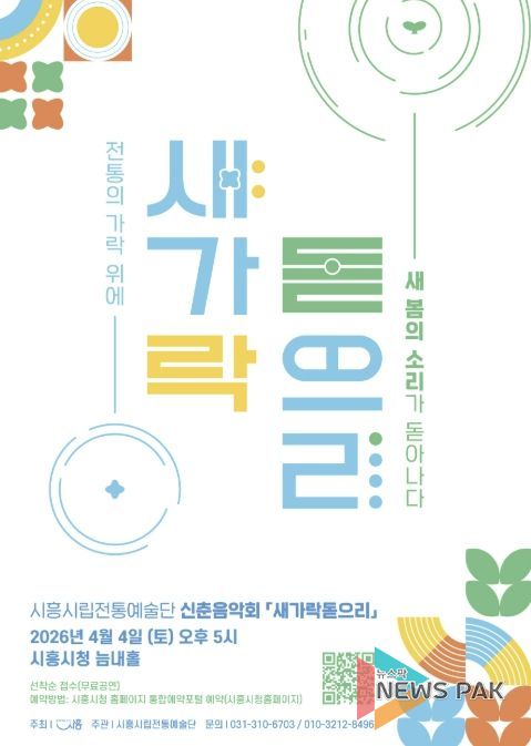 뉴스팍 배상미 기자 | 시흥시는 오는 4월 4일 오후 5시 시청 늠내홀에서 시립전통예술단 2026년 신춘음악회 ‘새 가락 돋으리’를 개최한다.