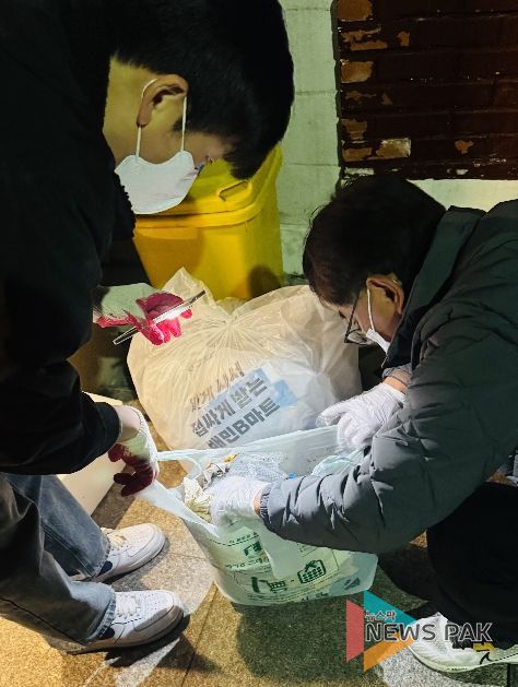 뉴스팍 배상미 기자 | 수원특례시 영통구는 '우리동네 새빛 새단장'의 일환으로 지난 19일 저녁 8시부터 10시까지 매탄동 일대 주택가 및 상가 주변 지역을 대상으로 쓰레기 무단투기 야간단속을 실시했다.