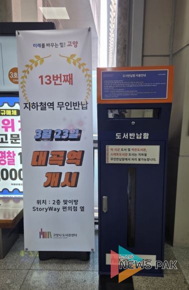 뉴스팍 배상미 기자 | 고양특례시 도서관센터는 시민들의 도서 반납 편의를 높이기 위해 대곡역에 무인도서반납함을 설치했다고 24일 밝혔다.