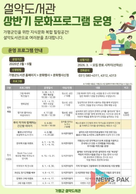 가평군도서관 관계자는 “이번 프로그램을 통해 주민들이 독서의 즐거움을 체감하고, 설악도서관에서 꿈과 희망을 키워가는 계기가 되길 바란다”고 말했다.