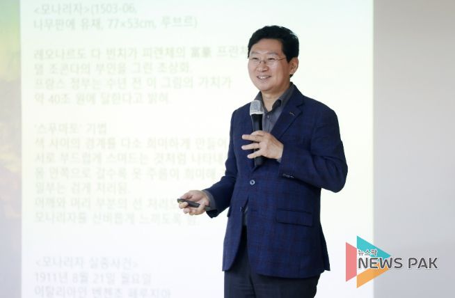 이상일 시장은 이석주 작가의 극사실주의 작품 ‘사유적 공간’으로 강연을 시작했다.