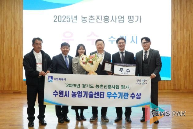 뉴스팍 배상미 기자 | 수원특례시 농업기술센터가 ‘2025년 경기도 농촌진흥사업 평가’에서 우수 기관으로 선정돼 경기도지사 표창을 받았다. 시상은 26일 열린 시군농업기술센터소장 업무협의회 중 진행됐다.