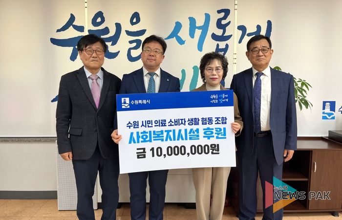 뉴스팍 배상미 기자 | 수원시민의료소비자 생활협동조합이 “도움이 필요한 취약계층과 사회복지시설에 전달해 달라”며 수원시에 1000만 원을 기부했다.