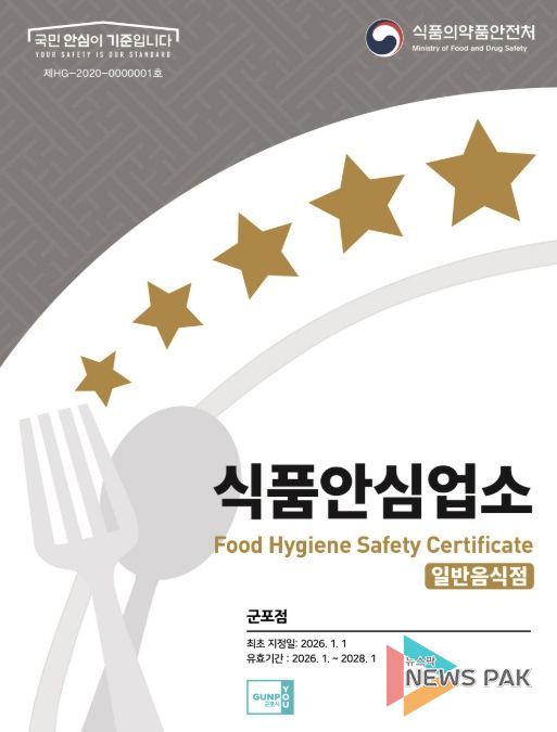 뉴스팍 배상미 기자 | 군포시는 식품안심업소(음식점위생등급 지정업소, 이하 지정업소) 재지정 평가에 대한 영업자 부담을 줄이고 재지정률을 높이고자 이달부터 지정업소 청소비 지원 사업을 추진한다.