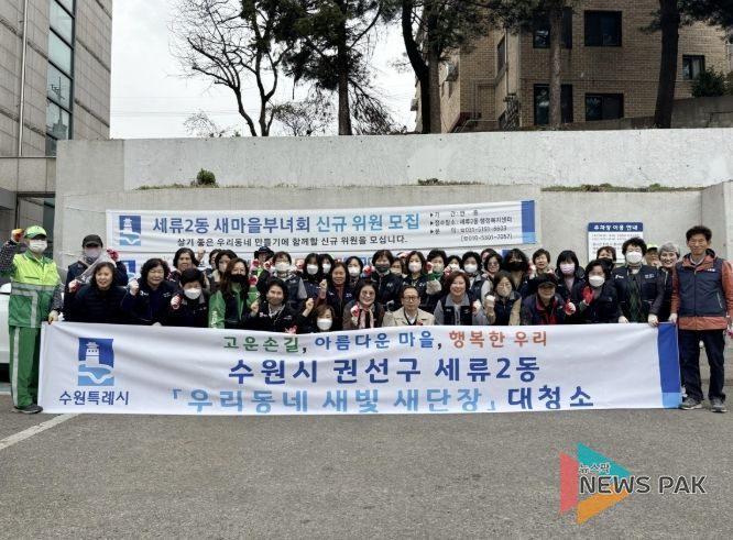 뉴스팍 배상미 기자 | 수원시 권선구 세류2동은 지난 30일 본격적인 봄을 맞아 주민들에게 쾌적하고 청결한 마을 환경을 선사하기 위해 ‘우리 동네 새빛 새 단장’ 봄맞이 대청소를 대대적으로 실시했다.