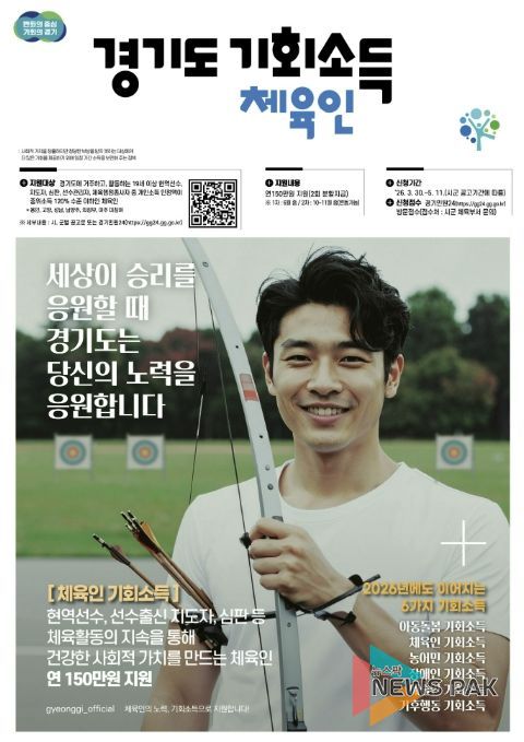 뉴스팍 배상미 기자 | 가평군은 3월 30일부터 5월 11일까지 ‘2026년 경기도 체육인 기회소득’ 신청 접수를 받는다.