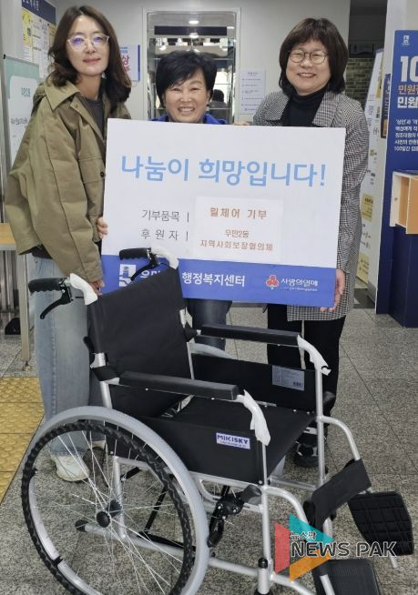 뉴스팍 배상미 기자 | 수원시 팔달구 우만2동 지역사회보장협의체는 지역 내 이동이 불편한 주민들을 지원하기 위해 휠체어 1대를 우만2동 행정복지센터에 기부했다고 밝혔다.