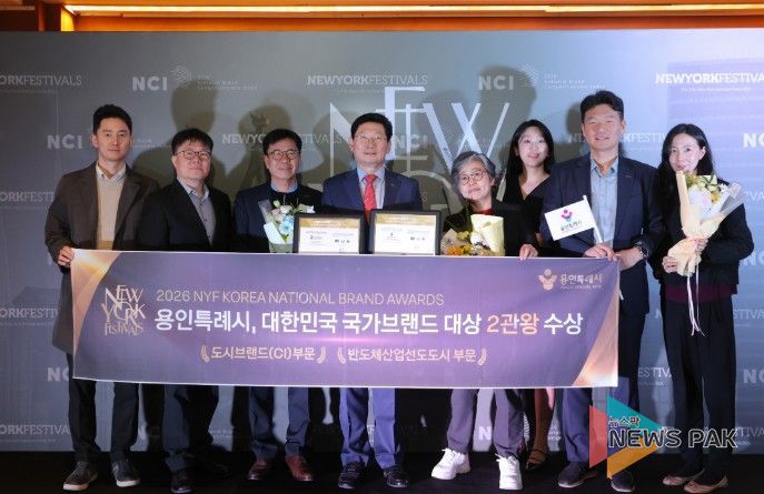 뉴스팍 배상미 기자 | 용인특례시가 칸 국제광고제, 클리오광고제와 함께 세계 3대 광고제로 꼽히는 뉴욕페스티벌(NYF)이 주관하는 ‘2026 뉴욕페스티벌 대한민국-국가브랜드 대상’(NYF K-NBA)에서 도시브랜드(CI) 부문과 반도체산업 선도 도시 부문 1위로 선정됐다.