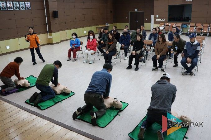 이번 교육은 오는 11일부터 19일까지 매주 주말 개최되는 에덴벚꽃길 벚꽃축제를 앞두고, 행사장 내 안전사고 예방과 초기 대응능력 강화를 위해 마련됐으며, 축제 운영요원 24명이 참석했다.