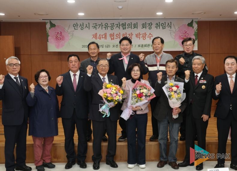 뉴스팍 배상미 기자 | 안성시 국가유공자협의회는 지난 4월 3일 보훈회관 1층 대회의실에서 회장 이·취임식을 개최하고, 보훈단체 간 화합과 협력 강화를 위한 새로운 출발을 알렸다.