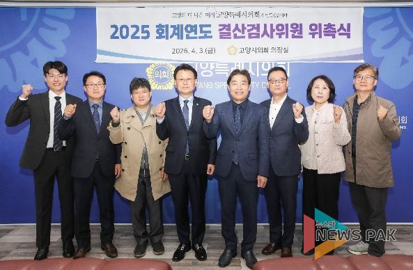 뉴스팍 배상미 기자 | 고양특례시의회는 3일 의장실에서 ‘2025회계연도 결산검사위원 위촉식’을 열고, 재정 및 회계 분야의 전문성을 갖춘 7명의 위원에게 위촉장을 수여했다.