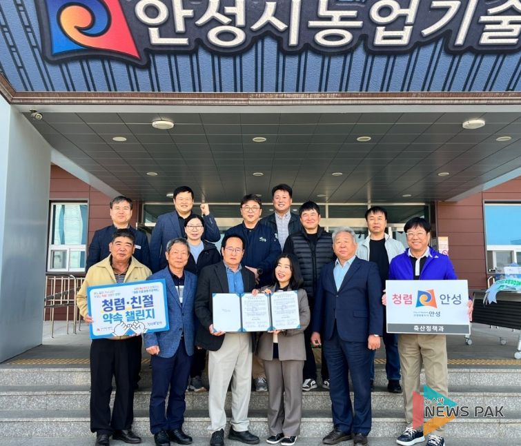 뉴스팍 배상미 기자 | 안성시 농업기술센터 축산정책과가 지역 축산단체들과 손잡고 투명하고 공정한 행정 실현을 위한 '청렴 행보'에 본격적으로 나섰다. 시는 지난 4월 2일, 안성시 축산단체협의회와 함께 청렴 협약식을 개최하고 신뢰받는 축산행정 구현을 위한 협력 기반을 강화했다고 밝혔다.