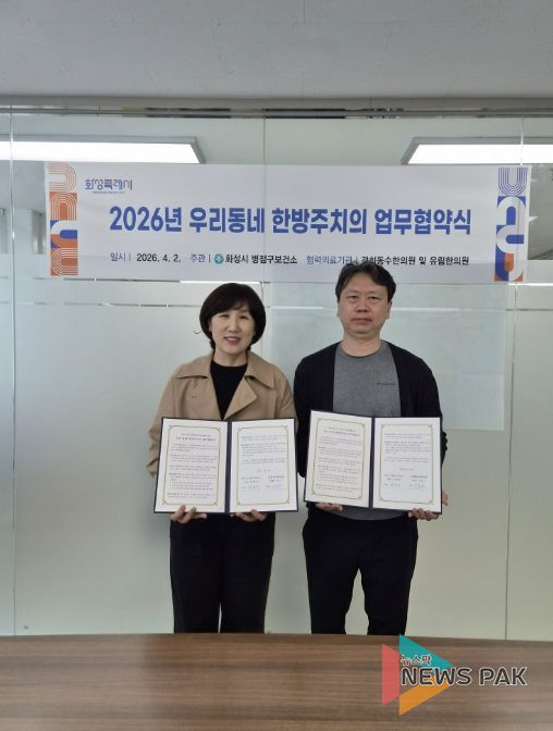 뉴스팍 류은정 기자 | 화성특례시는 병점구보건소에서 경희동수한의원, 유림한의원과 우리동네 한방주치의 사업 운영을 위한 업무협약을 체결했다고 밝혔다. 이번 협약식은 심정식 병점구보건소장, 이동수 경희동수한의원장, 신동희 유림한의원장, 방문전담간호사 등 사업 관계자가 참석한 가운데 진행됐다.
