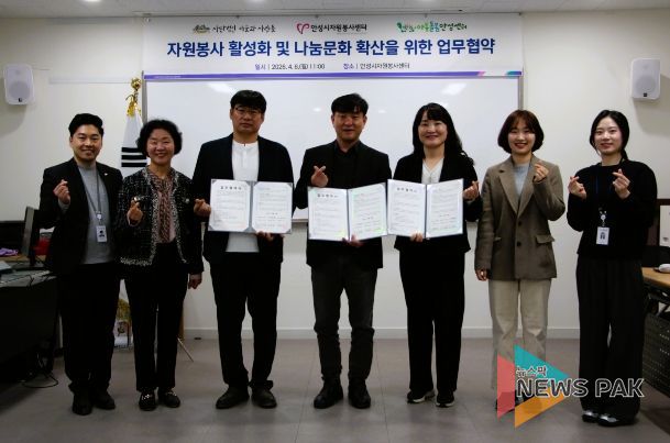 뉴스팍 배상미 기자 | 안성시자원봉사센터는 지난 6일, 안성시자원봉사센터 강의실에서 (사)마을과사람들, 경기도아동돌봄안성센터와 지역사회 복지 발전 및 나눔 문화 확산을 위한 업무협약을 체결했다.