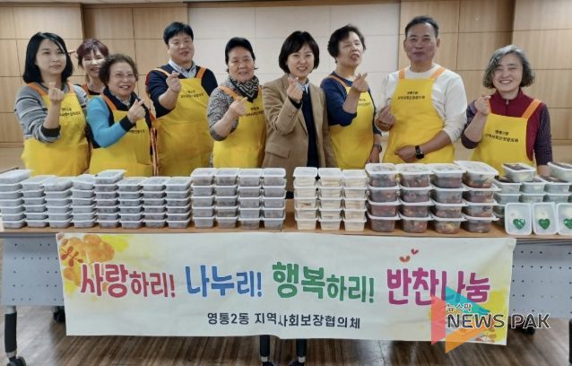 뉴스팍 배상미 기자 | 수원시 영통구 영통2동은 지난 8일 영통2동 지역사회보장협의체가 지역 내 취약계층을 위한 ‘사랑하리!나누리!행복하리!’ 반찬나눔 행사를 진행했다고 밝혔다.