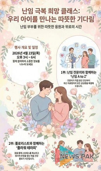 뉴스팍 이소율 기자 | 평택시는 오는 23일, 평택보건소에서 난임 부부의 건강한 임신을 지원하기 위한 ‘난임 전문의와 함께하는 난임 극복 희망 클래스’를 신규 운영한다고 밝혔다.