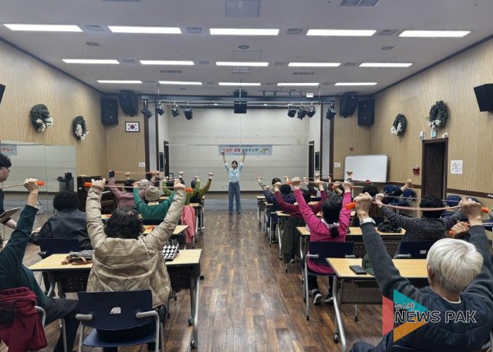 첫 회차에는 지압밴드를 활용한 스트레칭과 근력강화 운동, 긍정 웃음치료 프로그램이 진행됐으며, 참여 어르신들은 적극적으로 프로그램에 참여해 밝은 분위기 속에서 신체활동과 정서적 교류를 경험했다.