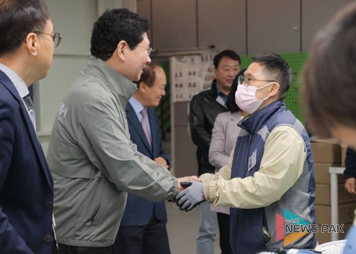 뉴스팍 배상미 기자 | 이상일 용인특례시장은 10일 오전 처인구 백암면에 있는 장애인직업재활시설인 성만원을 찾아 시설 관계자와 장애인 근로자들을 격려했다.
