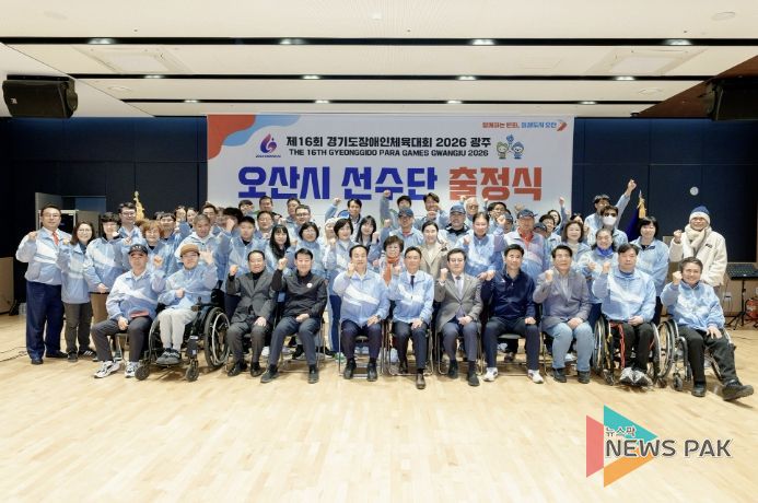 뉴스팍 이소율 기자 | 오산시장애인체육회는 ‘제16회 경기도장애인체육대회 2026 광주’에 참가하는 오산시 선수단 출정식을 지난 10일 오산오색문화체육센터에서 개최했다고 밝혔다.