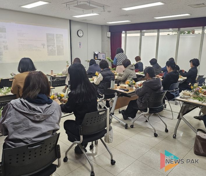 지난 4월 7일부터 오는 6월 16일까지 총 10회 과정으로 진행되는 이번 강좌는 그림책 읽기와 원예 활동을 결합해 시민들의 정서적 안정을 돕기 위해 기획됐다. 프로그램은 그림책 속 문장을 함께 나누며 자신의 감정을 돌아보고, 이를 꽃과 식물을 활용한 창작 활동으로 표현하는 데 중점을 두고 있다.