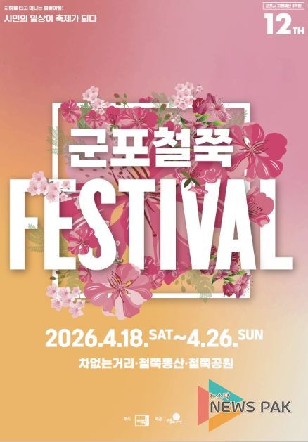 2026 군포철쭉축제는 4월 18일부터 26일까지 9일간 철쭉동산과 철쭉공원 일원에서 열린다. 개막일인 18일 오후 7시 차없는거리 특설무대에서는 개막식 축하공연이 펼쳐지며, 폭넓은 세대의 사랑을 받는 가수 이승기와 박정현이 출연해 축제의 개막 분위기를 한층 뜨겁게 달굴 예정이다.