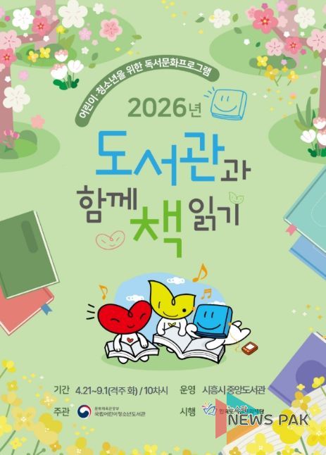 뉴스팍 배상미 기자 | 시흥시중앙도서관이 국립어린이청소년도서관이 주관하는 ‘2026년 도서관과 함께 책 읽기’ 공모사업에 지난해에 이어 2년 연속 선정됐다.
