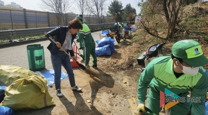 뉴스팍 배상미 기자 | 수원시 권선구 금곡동 행정복지센터는 지난 15일 금곡동 112-24 일원에서 권선구 환경위생과 공무원 및 환경관리원 12명과 함께 무단투기 폐기물을 정비했다.