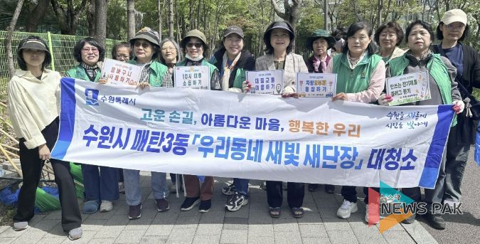 뉴스팍 배상미 기자 | 수원시 영통구 매탄3동은 지난 4월 16일 매탄3동 새마을부녀회가 지역사회의 쾌적한 환경 조성과 공동체 의식 함양을 위해 환경정화 활동에 나섰다고 밝혔다.