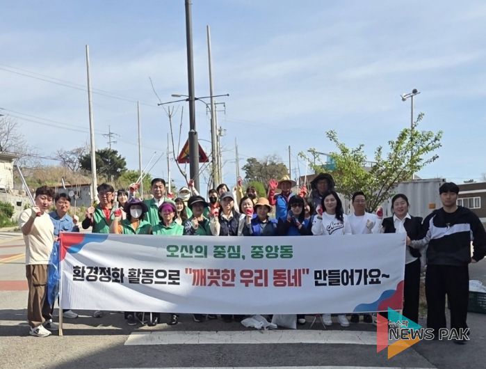 뉴스팍 이소율 기자 | 오산시 중앙동 행정복지센터는 지난 16일 부산동 일대에서 중앙동 4개 단체와 함께 관내 환경정화 활동을 실시했다고 밝혔다.