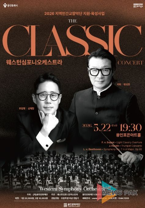 뉴스팍 배상미 기자 | 용인문화재단은 오는 5월 22일 오후 7시 30분, 용인포은아트홀에서 기획공연 '콘서트 'The 클래식''을 개최한다. 이번 공연은 ‘2026년 지역민간교향악단 지원육성사업’의 일환으로 진행되며, 세대를 아우르는 클래식 명곡들을 통해 시민들에게 클래식의 매력을 가까이에서 느낄 수 있도록 마련됐다.