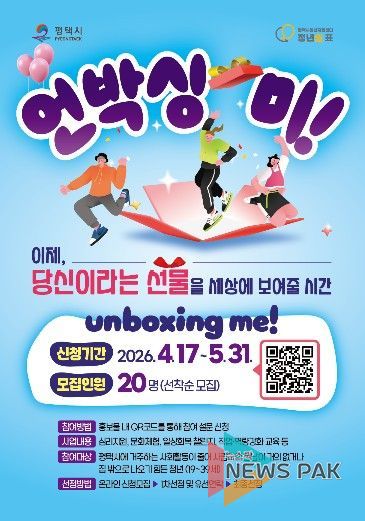 뉴스팍 이소율 기자 | 평택시 청년지원센터는 4월 17일부터 5월 31일까지 평택시에 거주하는 사회활동이 줄어 사람과의 만남이 거의 없거나 집 밖으로 나오기 힘든 청년의 일상 회복과 사회 참여 촉진을 위해 실시하는 지원사업 '언박싱 미!' 참여자를 모집한다.