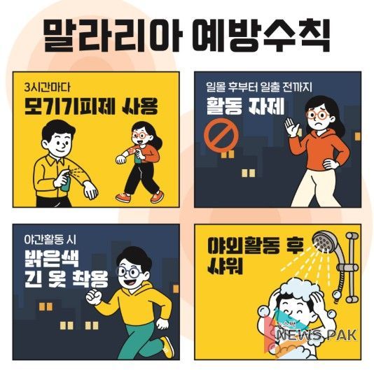 또 발열, 오한, 두통 등의 말라리아 의심증상이 발생하면 즉시 가까운 의료기관에 방문해 진료받아야 한다.