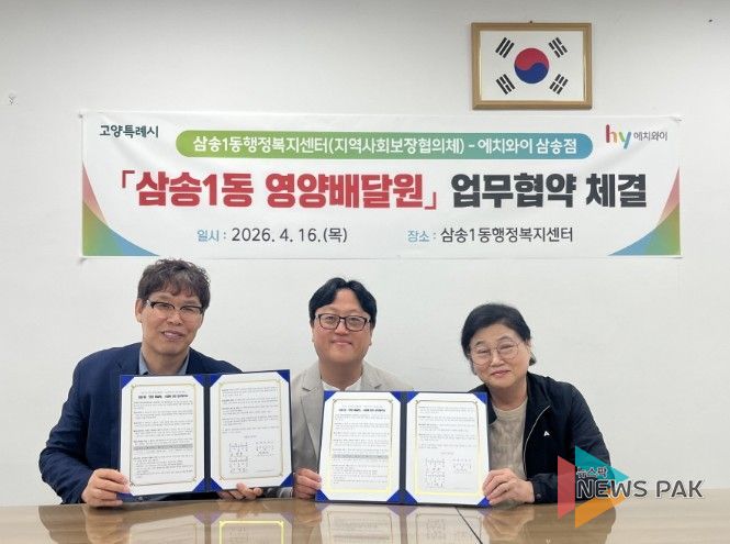 뉴스팍 배상미 기자 | 고양특례시 삼송1동은 지난 16일 취약계층의 건강과 안부를 동시에 살피는 ‘영양배달원’사업 추진을 위해 지역사회보장협의체와 ㈜에치와이 고양 삼송지점이 업무협약을 체결했다.