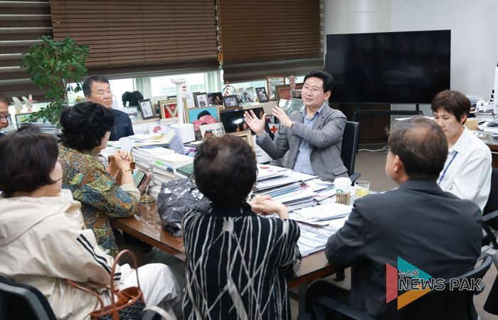 이 시장은 이날 시장실을 찾은 성동마을LG빌리지1차아파트 입주자대표회의 구자훈 회장 등 주민 9명과 대화했다.