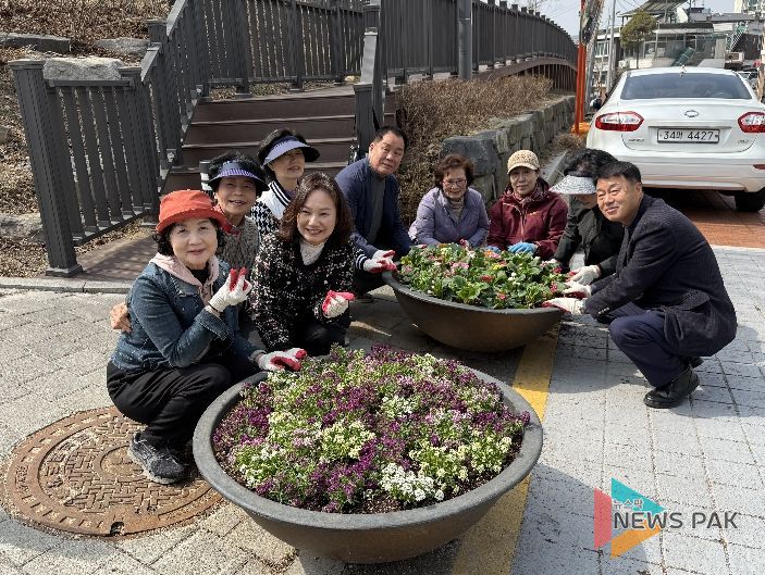 뉴스팍 배상미 기자 | 수원시 장안구 연무동 주민자치회는 지난 17일, 연무동 내 아름다운 꽃동산 조성을 위한 첫걸음으로 퉁소바위공원 입구에 꽃을 식재했다고 밝혔다.